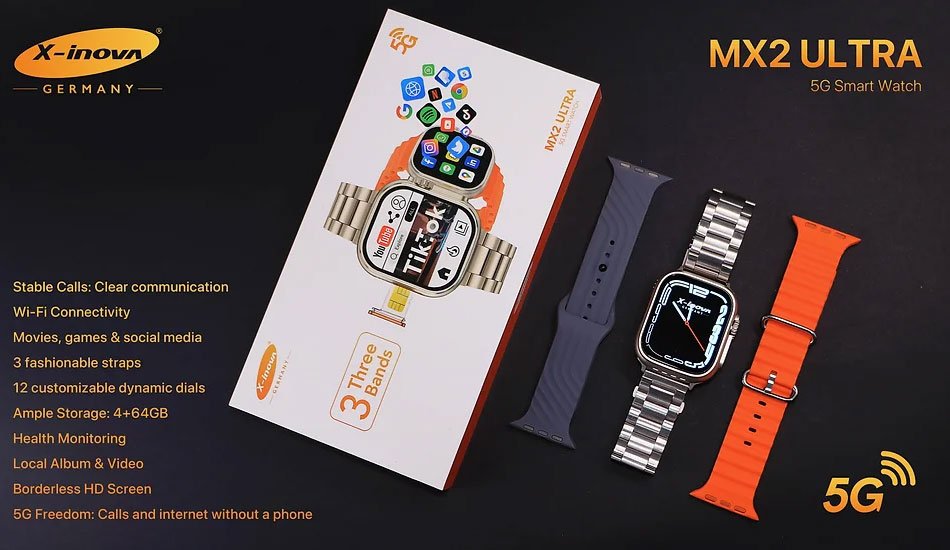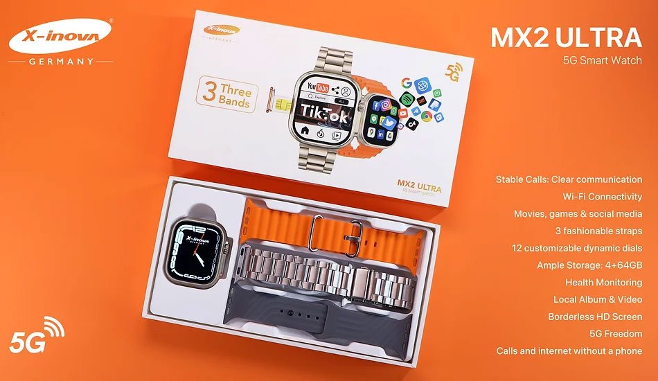ساعة ذكية متوافقة مع بطاقة SIM 5G من ماركة x-inova موديل MX2 ULTRA