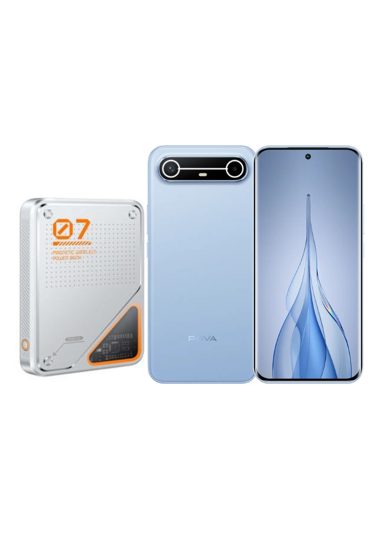 هاتف تكنو بوفا سليم 256 جيجا , 8 جيجا رام شاشة 6.78 مع باور بنك 5000 ملي , ازرق سماوي
